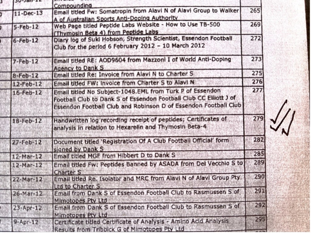 Alavi: “Yes. We have got Steve Dank’s [and Essendon’s] dispensing history. {document 48}