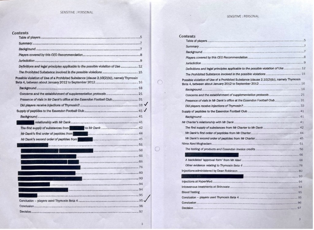 ASADA refused to release this document on the grounds of privacy for 1,341 days. After spending $143,719.43 with the Australian Government Solicitors Office fighting its, and other documents release, the AAT ordered its release.